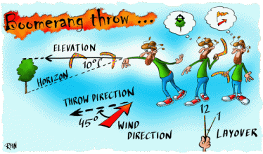 high, the boomerang will land behind you. If you throw too low, the boomerang